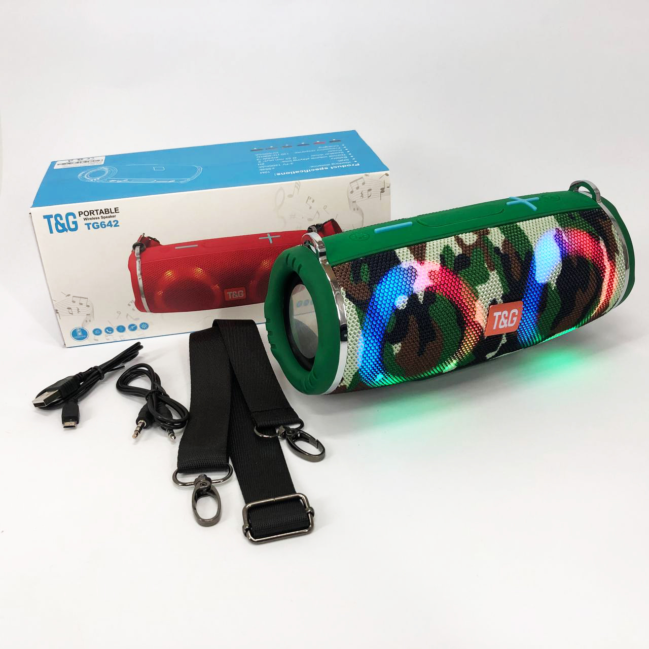 Портативна колонка TG642 з RGB підсвічуванням та ремінцем