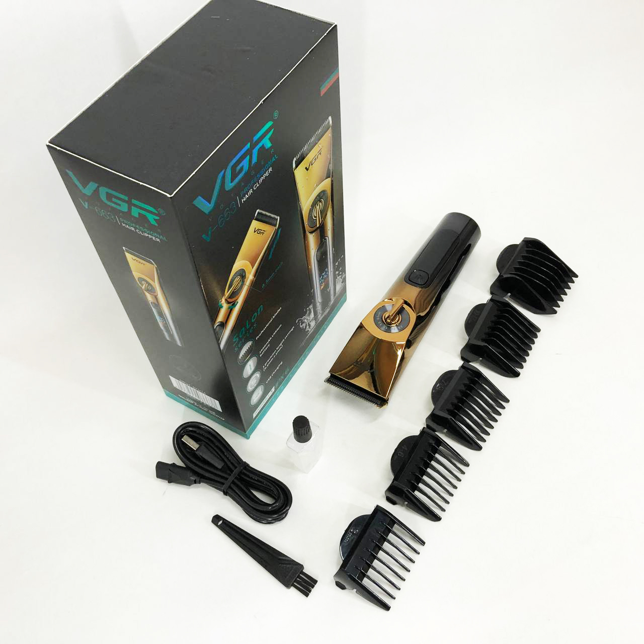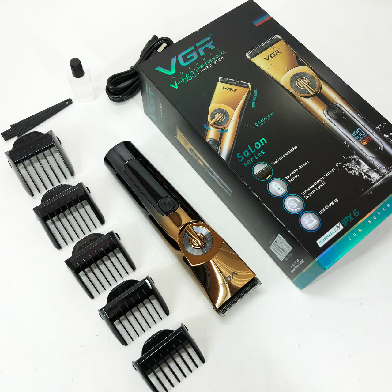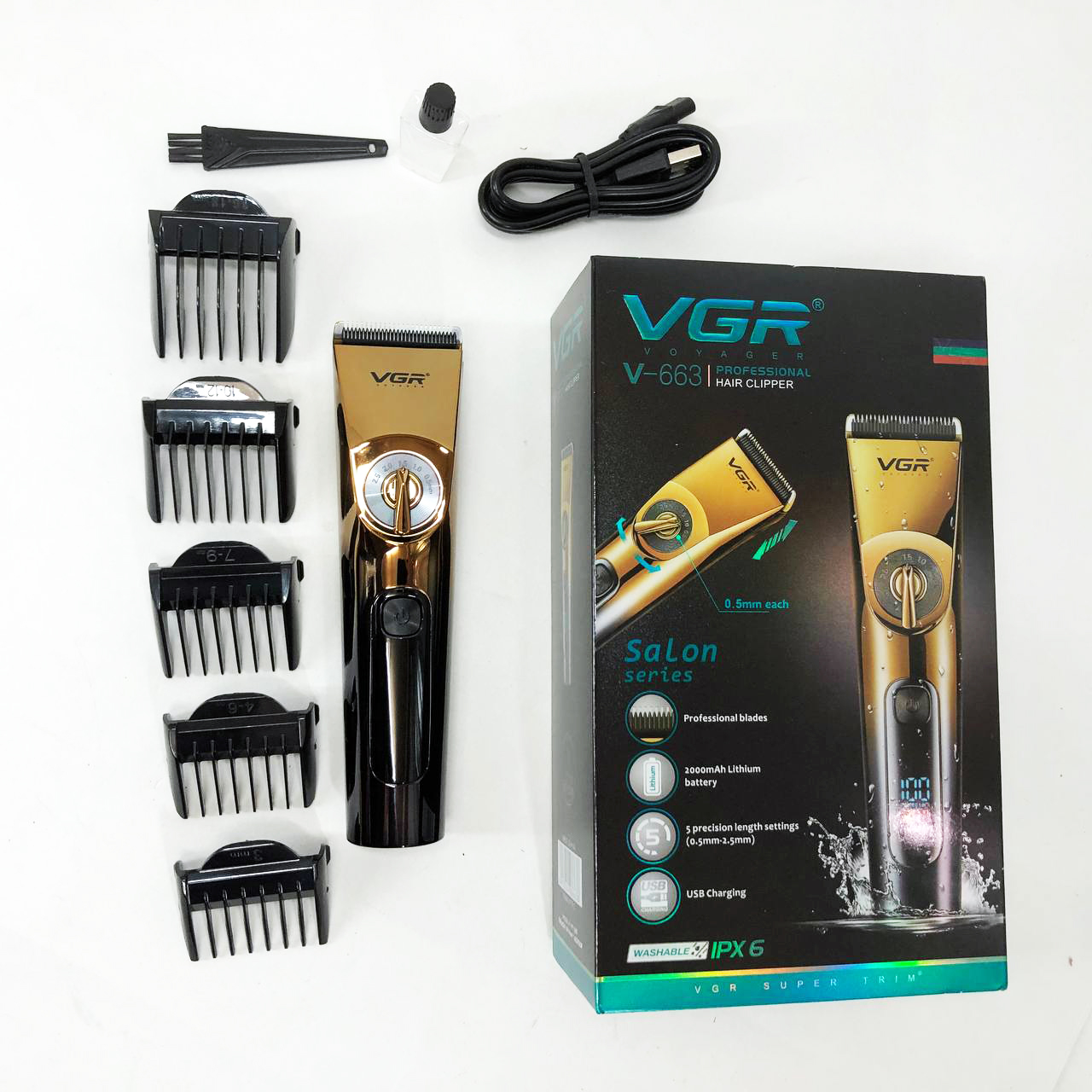 VGR V-663 – це акумуляторна бездротова машинка для стрижки волосся і бороди з футуристичним дизайном і фантастичною точністю зрізу. У машинці зійшлося воєдино все найнеобхідніше для ідеальної стрижки: ніж зі сталі шириною 45 мм і висотою зрізу 0.5 мм, літій іонний акумулятор, збільшений час автономної роботи до 200 хвилин до 200 хвилин дисплей.