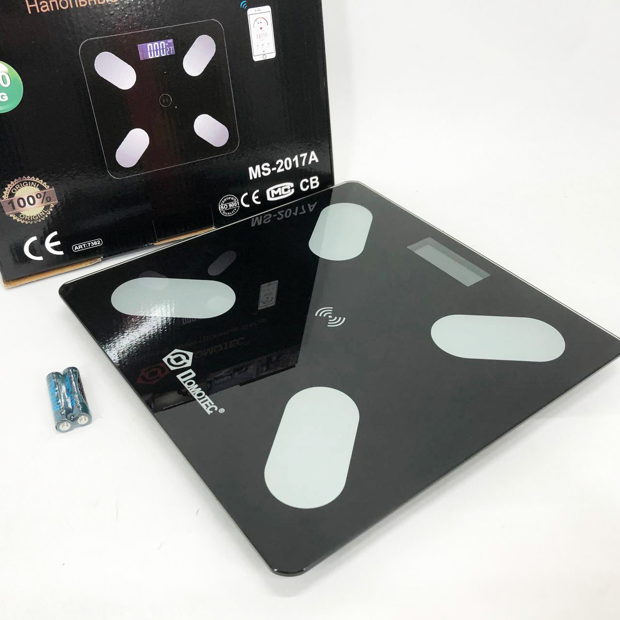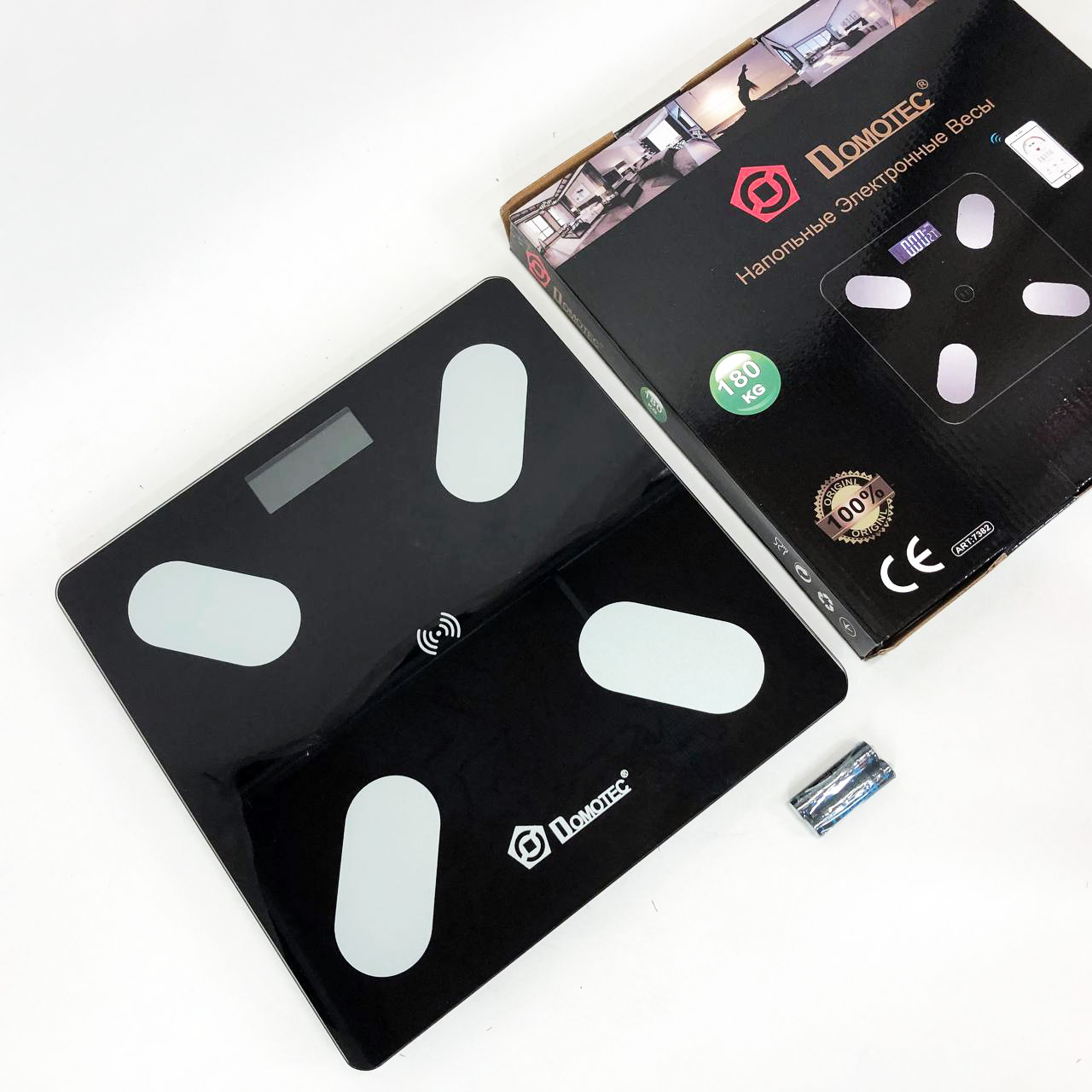 Ваги ваги Domotec виготовлені з міцного скла квадратної форми. Завдяки компактним розмірам, ваги підлоги зручно зберігати – не займуть багато місця. Розраховані на вимір ваги в діапазоні до 180 кг. Мобільний додаток можна встановити відсканувавши QR-код з інструкції.