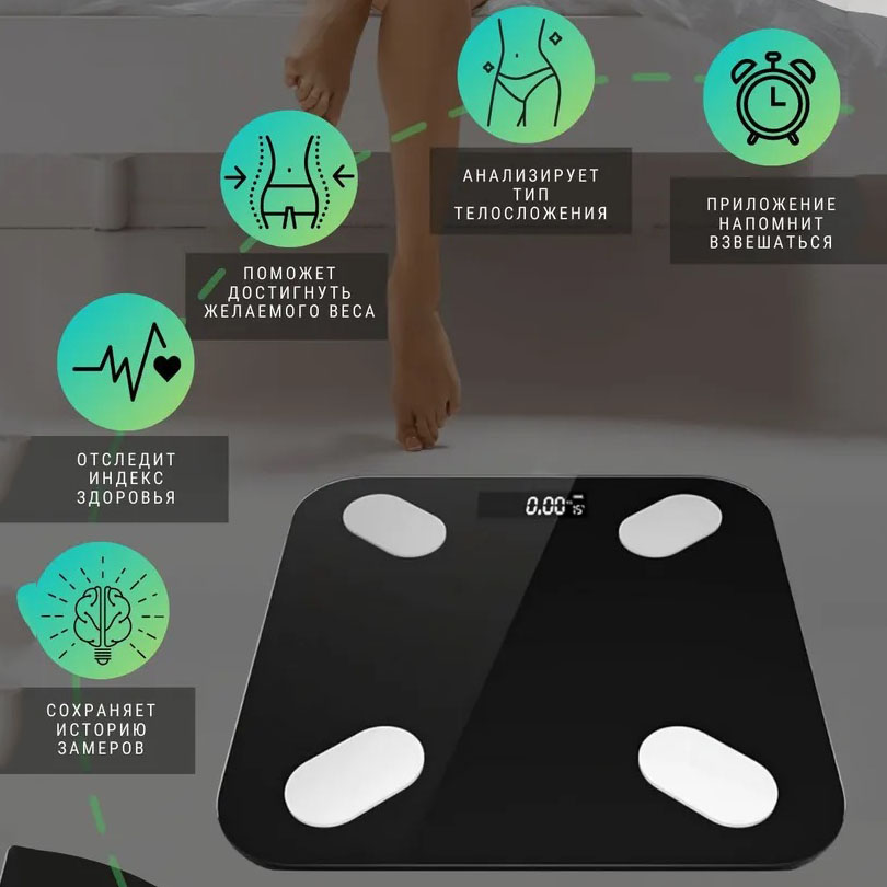 - Підключивши телефон до ваги за допомогою програми, Ви зможете визначити вміст води, жирової, м’язової тканини, ІМТ та інше;